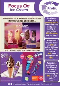 NEW i L INTRODUCING 2024 NPD… MAGNUM HAD THE #1 AND #2 NPD LAUNCHES IN 2023 * DON’T MISS OUT, STOCK UP YOUR FREEZERS TODAY! COOKIES & CHOCOLATE 68 Mixed Berries ** *Nielsen GB Total Impulse, 52 wks to 30/12/23 ** From purees and fruit juice from concentrates UFS24479 Walls UNITAS NPD A4P Ad VW AW3.indd 1 25/03/2024 16:36 Focus On Ice Cream Ice Cream sales are growing by 7%, with hand-held multipacks leading the way with a 23% increase year on year. 1 1 Nielsen GB Total Impulse: MAT to 16.09.23 Hand-held singles make up 51% of sales, followed by Ice Cream Tubs at 30%, and multipacks at 19%. 1 1 Nielsen GB Total Impulse: MAT to 16.09.23 Take Home Ice Cream is the biggest category in frozen, accounting for 18% of total sales 2 2 Kantar Data Take Home Ice Cream 52wk 11/06/23 @Plan_for_Profit @PlanforProfitRetail planforprofit.co.uk